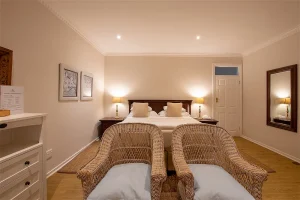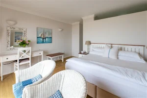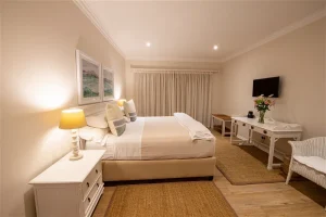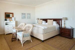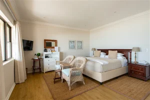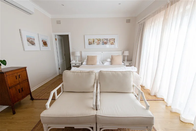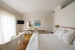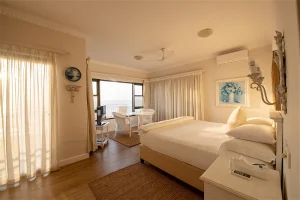 The rooms are light and airy, each thoughtfully designed to make the most of the ocean panorama. Guests can enjoy breakfast on the terrace overlooking the beach, take a stroll along the shoreline, or simply unwind in the comfort of a space that feels both homely and refined.